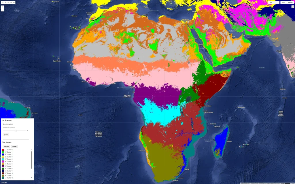var allClusters = alphaEarth.cluster(clusterer);
